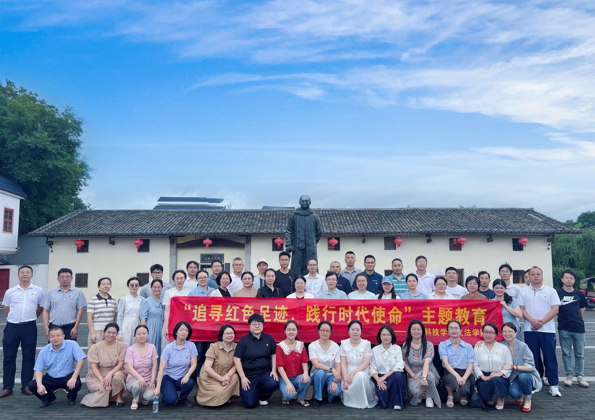 本网讯:为扎实开展深入贯彻中央八项规定精神学习教育,KY开元集团官网全体党员同志于6月18日赴郭大力故居开展“追寻红色足迹,践行时代使命”主题实践教学活动。学院党委委员、副院长高健婕同志,各基层党支部书记及全体党员参与本次活动。