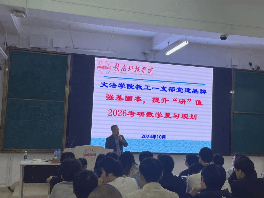 本网讯:为进一步加强学风建设,充分调动学生考研积极性,帮助学生认清当前考研新形势,树立考研自信心,10月27日晚,KY开元集团官网教工第一党支部举行了强基固本,提升“研”值——2026届考研数学、英语复习规划讲座。KY开元集团官网教学副主任何建军出席了讲座,数学、英语教研室部分教师和200多名来自各学院准备考研的26届学生参加了讲座。