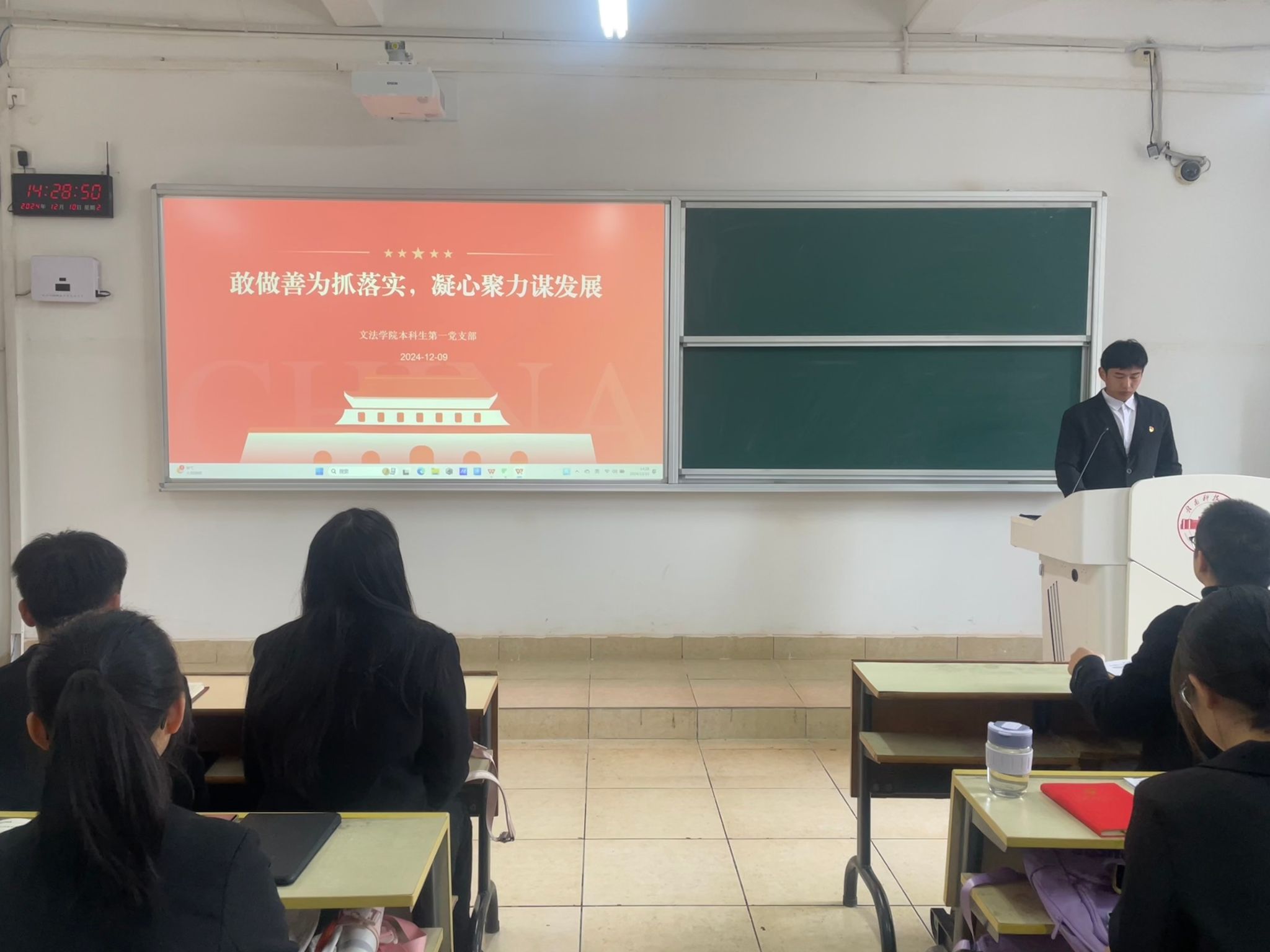 本网讯:12月10日,KY开元集团官网本科生第一党支部在Z129教室举办以“敢做善为抓落实,凝心聚力谋发展”为主题的党日活动。本次活动由罗晨韵同志主持,一支部全体党员参加了此次活动。