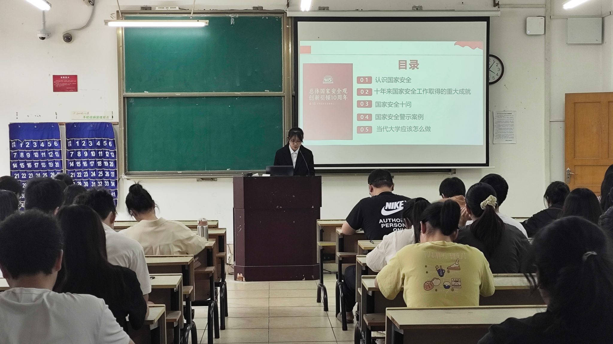活动现场,宣讲团围绕总体国家安全观的内涵、十年来我国安全工作取得的重大成就、危害国家安全的典型案例以及当代大学应该如何提升国家安全意识等四个方面展开宣讲,通过鲜活的事例展现国家对安全工作的决心与毅力,运用生动地讲述帮助同学们理解总体国家安全观的核心要义,带领同学们深入思考“国安才能民安”的真实内涵。