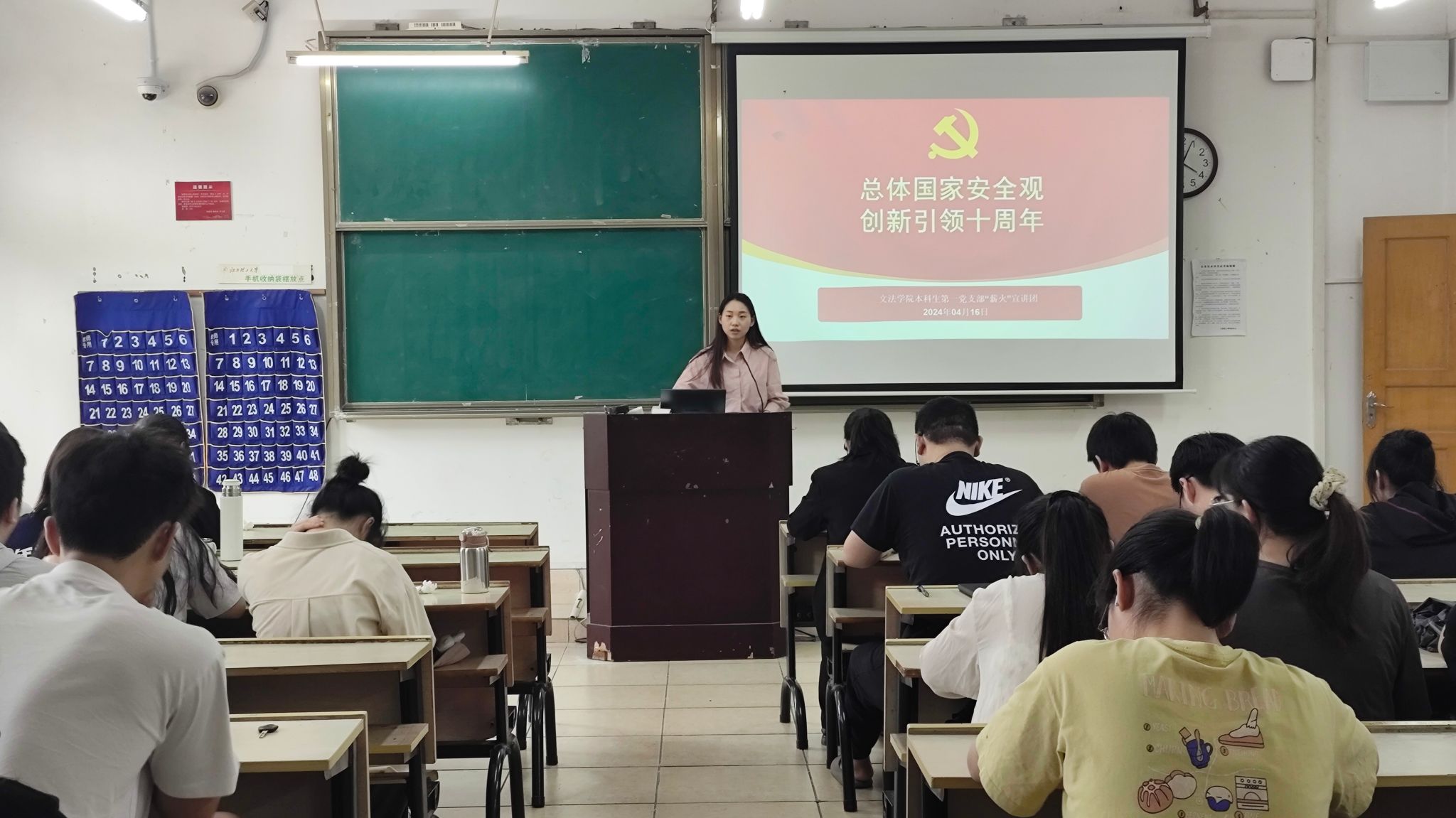 本网讯:为全面贯彻总体国家安全观,切实增强大学生的国家安全意识,凝聚维护国家安全的共识和力量。4月16日下午,KY开元集团官网本科生第一党支部“薪火”宣讲团面向2022级学生开展“总体国家安全观•创新引领10周年”主题宣讲活动。