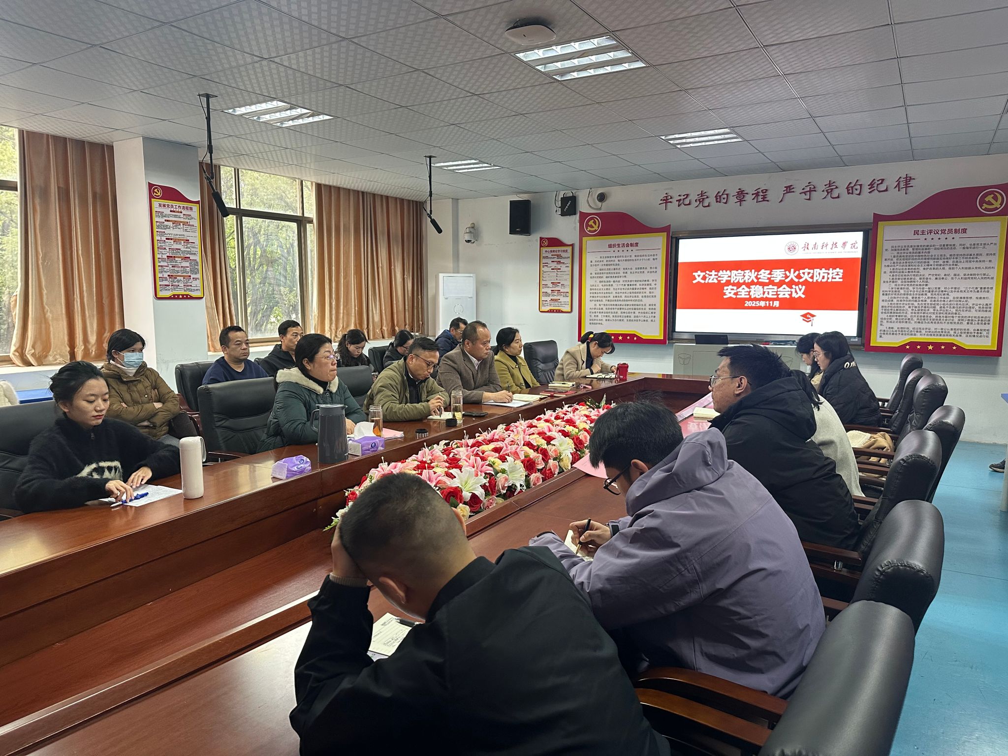 本网讯:根据省教育厅、省消防安全局在全省教育系统秋冬季节火灾防控工作视频调度会暨学校平安建设月度例会的指示精神,以及省教育厅《关于开展冬季学生关爱行动的工作提示》要求,为全力织密秋冬季节学生安全防护网,KY开元集团官网于11月18日组织召开全院秋冬季火灾防控安全稳定会议,部署学生管理及宿舍安全专项排查工作。学院党委委员、副院长高健婕,学院党委委员、副院长李敏,学院党委委员王军堂出席会议,学院全体辅导员班主任参加会议。