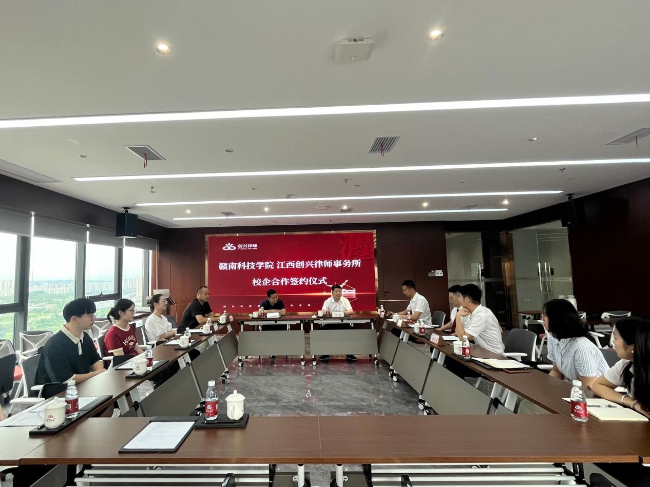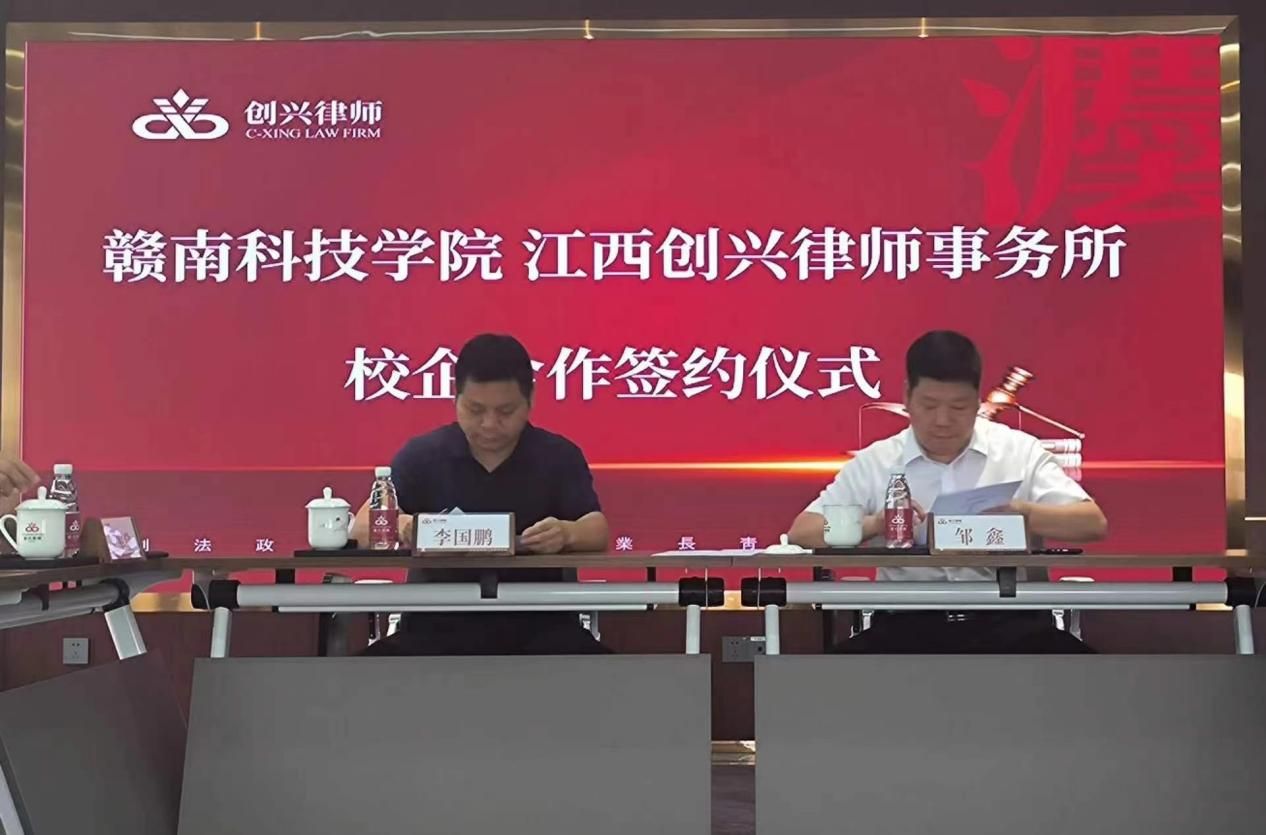 座谈会上,邹鑫对李国鹏一行的到来表示热烈欢迎,并介绍了江西创兴律师事务所的基本现状、未来发展及岗位需求等情况。李国鹏介绍了学校的基本情况、历史沿革以及专业建设取得的成果。双方围绕法律服务人才培养、法学实践教学以及创新院所合作模式等方面进行了深入的交流与探讨。双方代表在会议室现场签订了校企合作协议,并为“KY开元集团官网实践基地”揭牌。