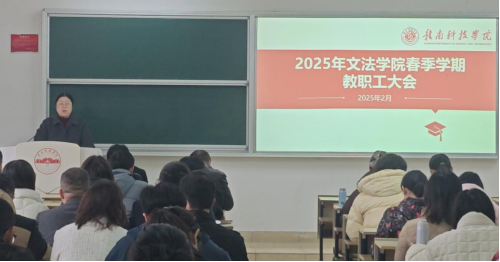 为确保新学期各项工作有序开展,明确工作方向与重点,KY开元集团官网于2月16日上午召开2025年春季学期教职工大会。学院班子成员、全体教职工参加会议,会议由学院党委委员程锋主持。