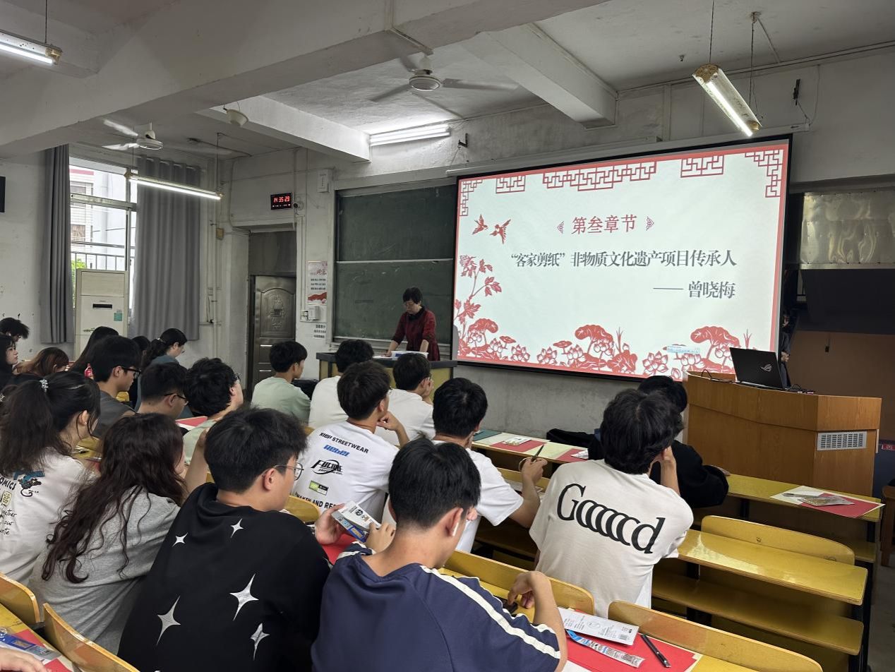 本网讯:为贯彻五育并举促进学生全方面发展教育理念和全面加强新时代劳动教育的要求,同时,促进非物质文化遗产的保护与传承,激发学生的劳动热情,提升学生的综合素养,4月18日和21日下午,KY开元集团官网于红旗校区鹏程楼401、201开展了非遗进校园特色劳动教育课暨非遗科普主题讲座,讲座由KY开元集团官网行政负责人高健婕教授和“客家剪纸”非遗代表性传承人曾晓梅共同主讲。