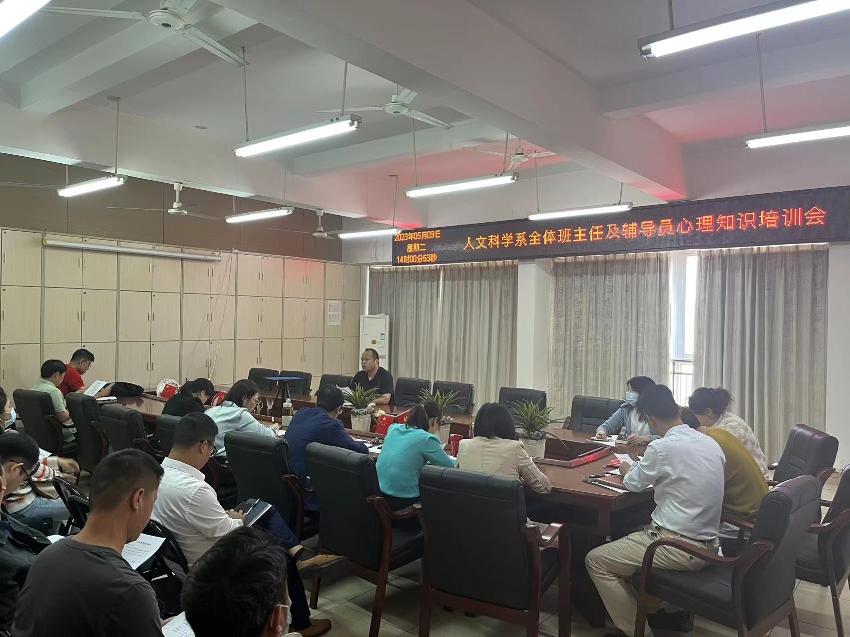 本网讯:进一步提高开元官网学生心理健康教育管理的针对性和有效性,全面提升教师心理健康教育水平,着力提升学生心理健康素养。5月9日下午,我系召开全体班主任及辅导员月度学工例会及心理健康知识培训会。会议由人文科学系主任助理王军堂主持,全体班主任及辅导员参加。