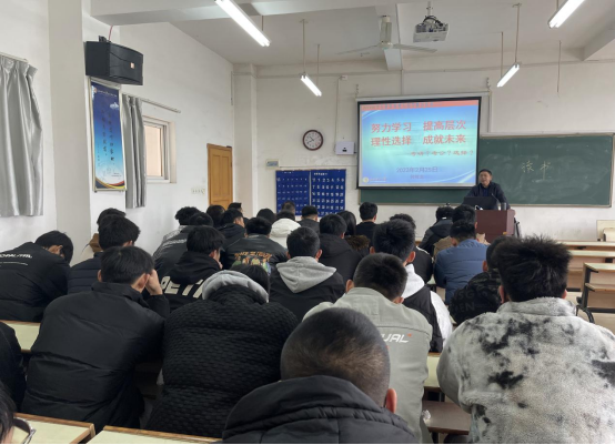 2月25日上午,为进一步激发社体191班学生的考研、考公热情,增强斗志,科学规划备考,提升“上岸”率。学校过渡期管委会常务副主任、应科院党委副书记、院长、社体191班三联系领导何锦龙为学生开展教育主题为“努力学习,提高层次;理性选择,成就未来”的开学第一课。人文科学系学工负责人王军堂、全体辅导员以及社体191班全员学生聆听了该课堂。