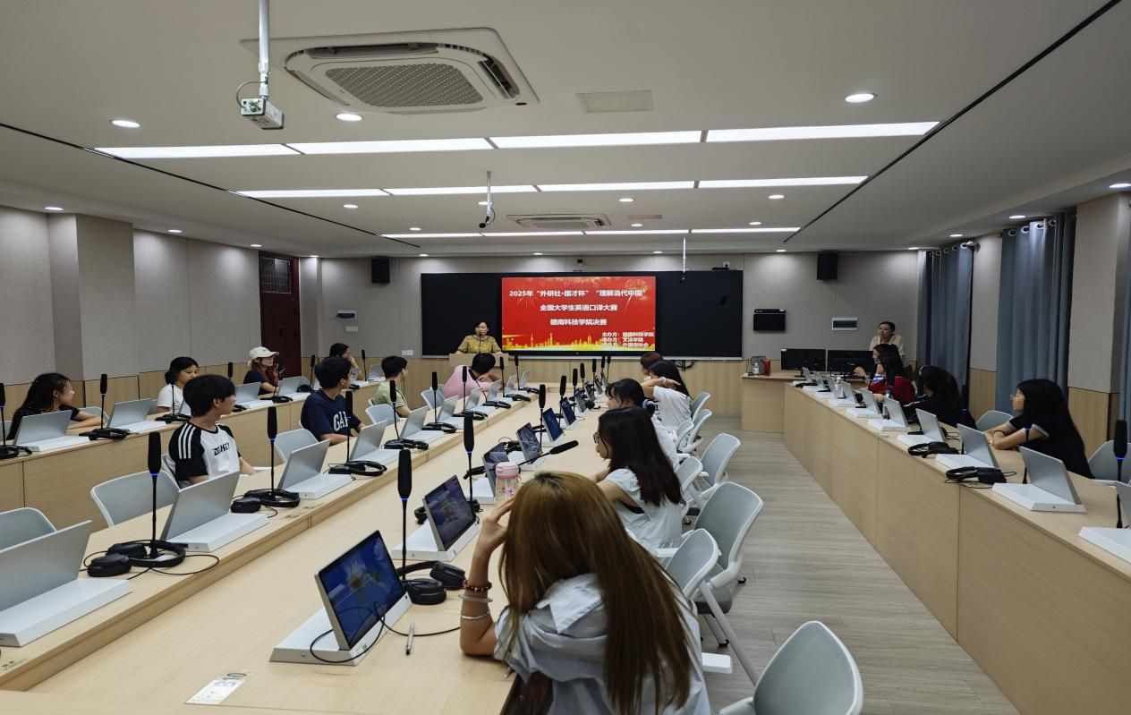 本网讯:9月26日,KY开元集团官网在智慧多功能同声传译实验室举办2025年“外研社·国才杯”“理解当代中国”全国英语口译大赛校级决赛。决赛由顾玲、范丽萍、郭磊磊、王盼四位老师担任决赛评委老师,共有40位选手从选拔赛中脱颖而出。