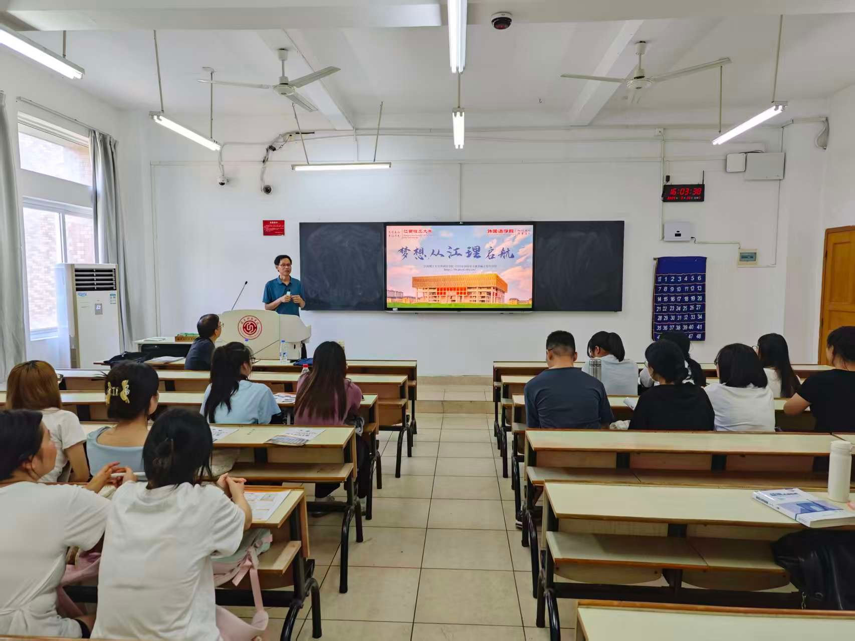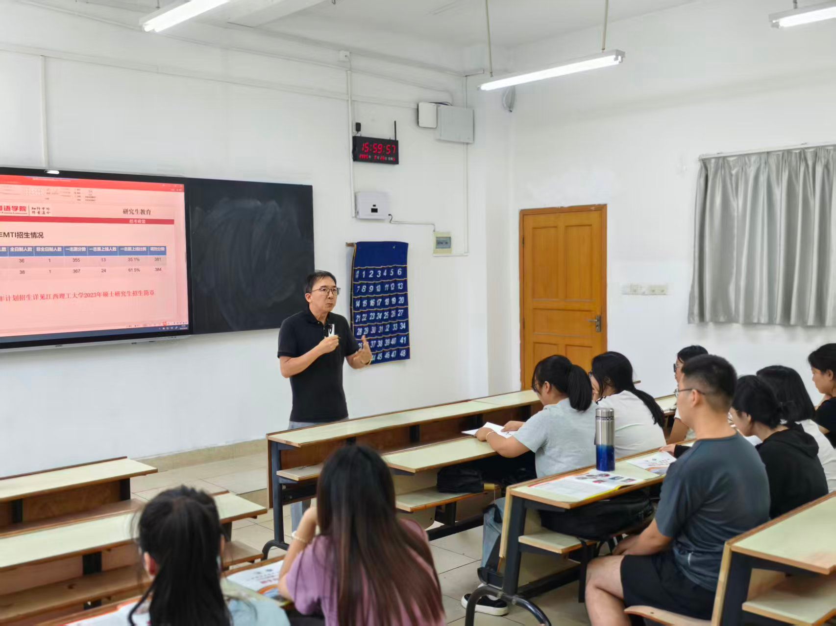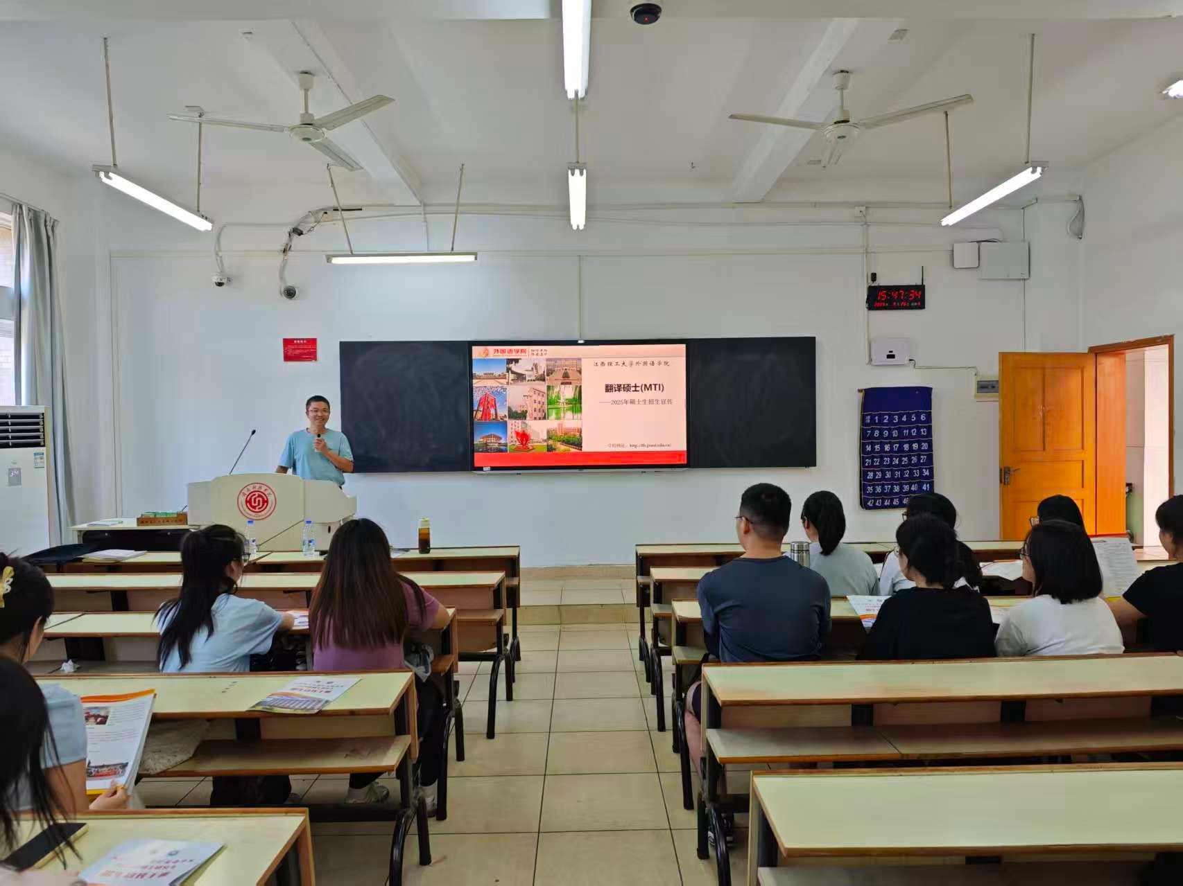 本网讯:2025年全国硕士研究生报名在即,9月26日下午,KY开元集团官网英语教研室邀请江西理工大学外国语学院翻译硕士专业学位(MTI)硕士点负责人张建平教授、汉语国际教育专业硕士点翻译硕士学位点负责人钟舟海副教授、2026级研究生班主任蔡强副教授,给学院英语专业22级和23级学生开展考研指导讲座。