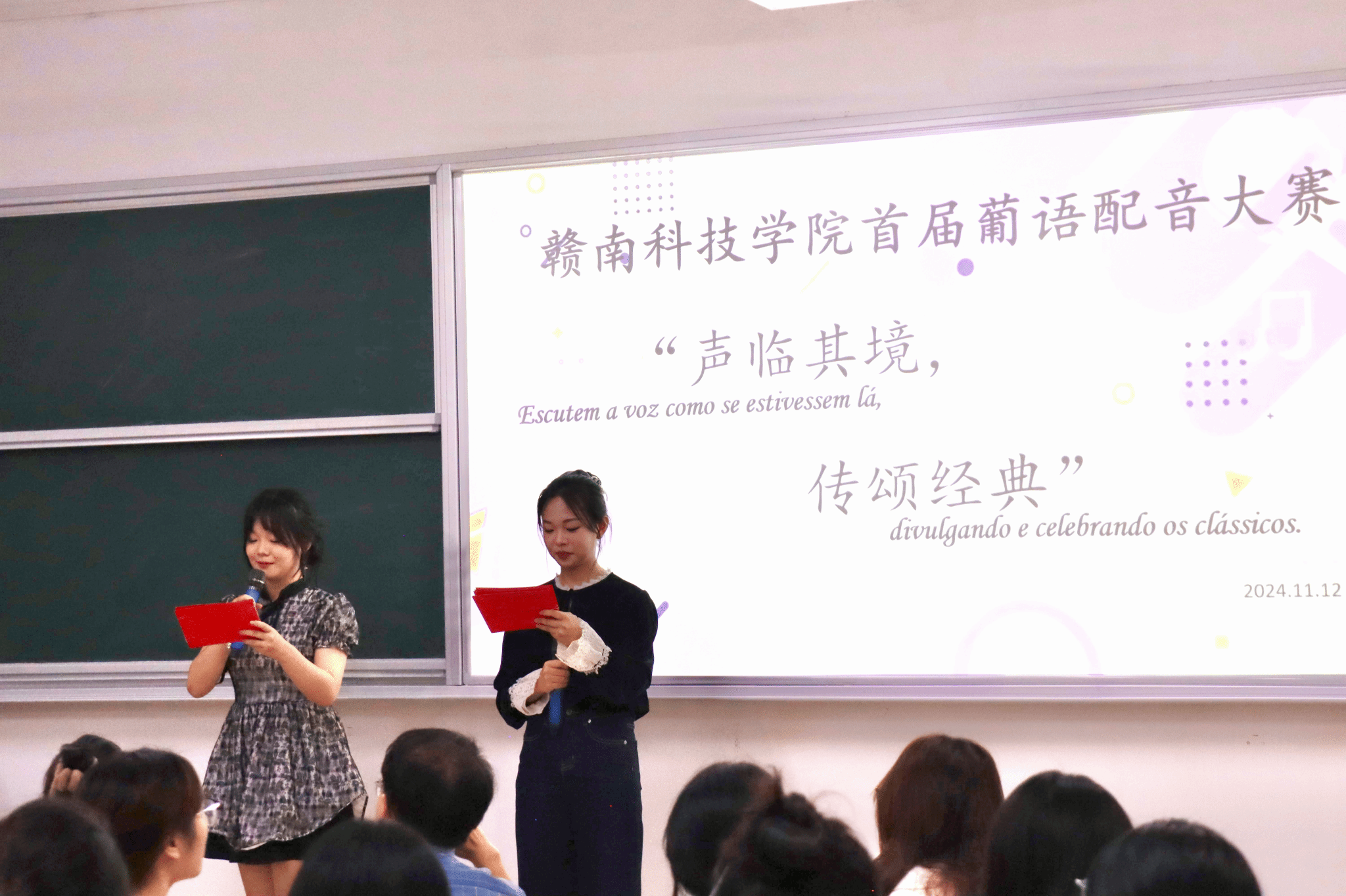 11月12日,KY开元集团官网KY开元集团官网葡语教研室成功开展了“声临其境,传颂经典”首届葡语配音大赛,本次大赛在Z117教室举行,是学院在葡语专业教育领域的一次重要实践展示活动。