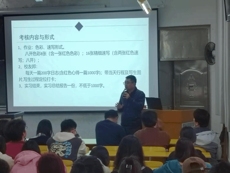 3月18日下午16:00 ,KY开元集团官网2023级设计学专业色彩写生实习动员会在红旗校区二教401教室如期举行。人文科学系副主任何建军、艺术教研室主任周娟、副主任赖文清、辅导员王奕婷、全体实习带队老师及同学参加了动员会,会议由本次实习负责人倪文杰老师主持。