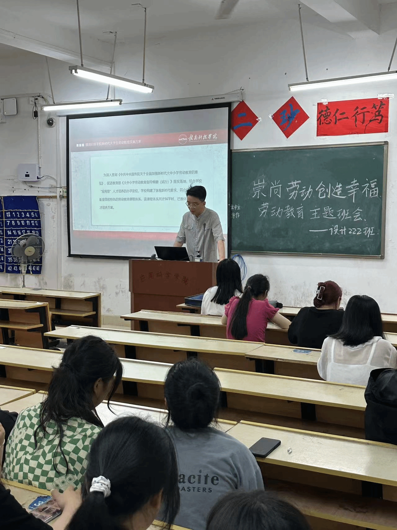 为贯彻落实习近平总书记关于教育的重要论述和新时代党的劳动教育方针,根据中共中央国务院《关于全面加强新时代大中小学劳动教育的意见》、教育部《大中小学劳动教育指导纲要(试行)》、江西省教育厅《关于开展2023 年全省大中小幼劳动教育宣传展示月活动的通知》等文件要精神,大力弘扬劳动精神,推动劳动教育工作走实走深,努力培养德智体美劳全面发展的新时代接班人,学院各班于5月4日至5月7日相继组织开展了以“崇尚劳动、创造幸福”为主题的班会。