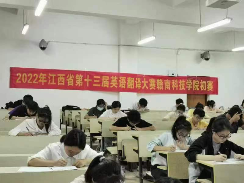 2022年10月25日晚,2022年KY开元集团官网英语翻译比赛暨2022年江西省第十三届英语翻译大赛选拔赛在主教学楼顺利举行。大赛由公共外语教研室、专业英语教研室共同承担了本次大赛的组织工作,共有400余名学生参赛。