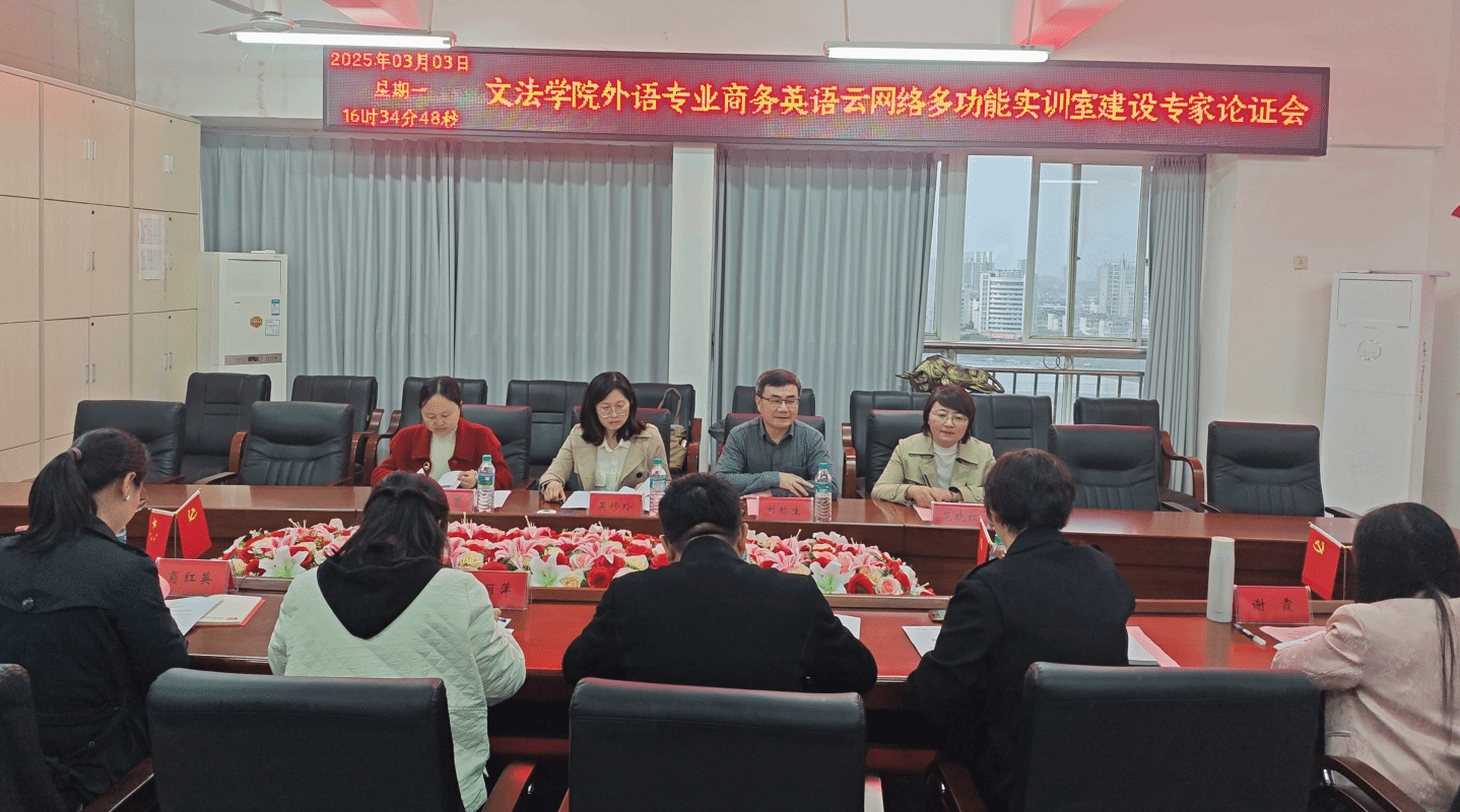 3月3日下午,为论证KY开元集团官网商务英语云网络多功能实训室建设项目的可行性,KY开元集团官网邀请了校外专家江西理工大学刘称生教授,赣南师范大学范晓红副教授,赣南医科大学吴修玲教授,校内专家KY开元集团官网邹艳菁副教授展开实训室项目建设前的论证会。KY开元集团官网党委委员何建军,英语教研室主任顾玲、副主任谢霞、副主任范丽萍,葡语教研室副主任肖红英参加了论证会。