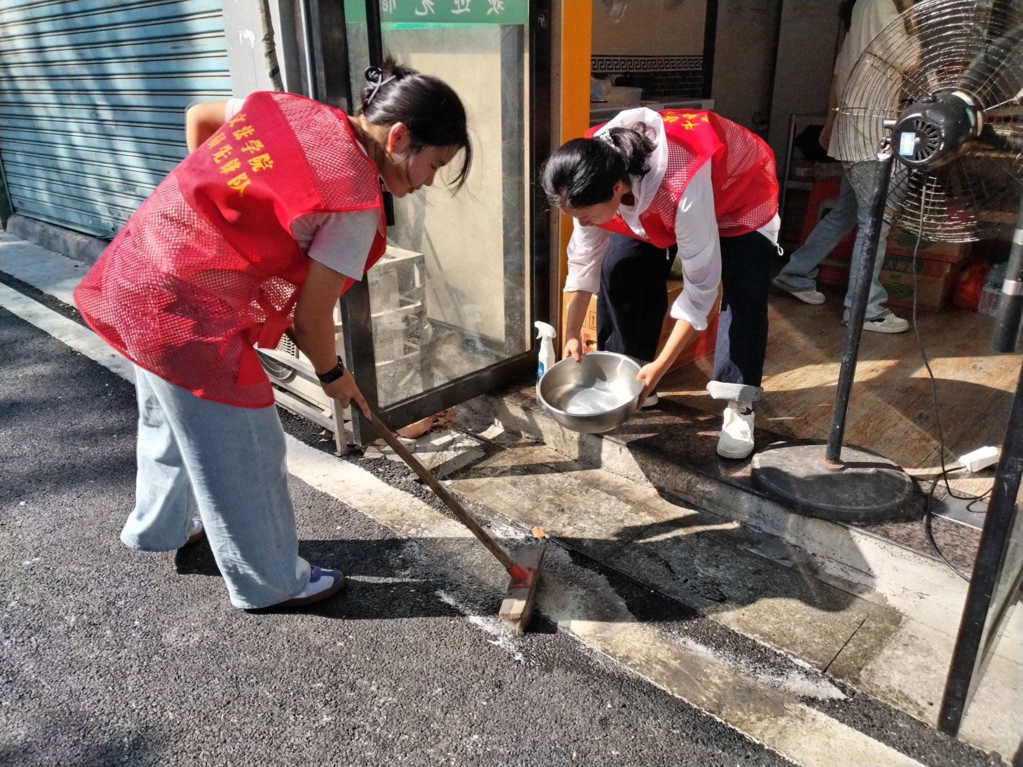 志愿者们的身影活跃在小区的各个角落——有的仔细清扫路面堆积的落叶,有的耐心捡拾绿化带中的塑料瓶、纸屑等白色垃圾,有的合力清除楼道内胡乱张贴的小广告,还有的将乱停乱放的电动车逐一归位,摆放整齐。大家分工明确,配合默契,充分展现了文法学子不怕脏、不怕累的优良作风和服务社会的青春担当。