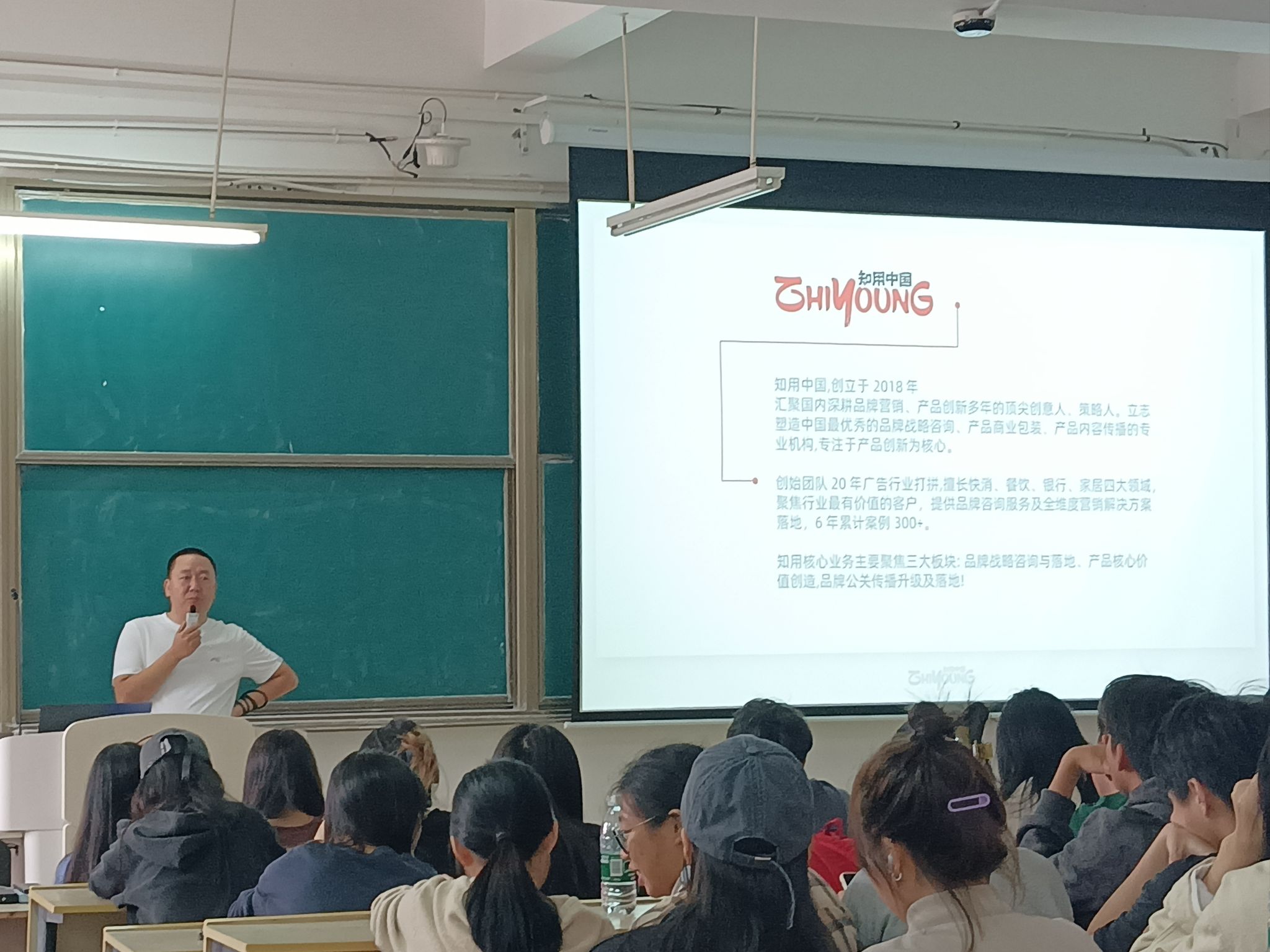 侯元华经理以上海知用广告设计公司为例,重点介绍了公司当前热招的岗位信息,包括岗位职责、任职要求以及职业发展路径等。同学们积极围绕岗位工作内容、工作环境、公司文化等方面的问题进行提问,侯经理耐心解答,现场气氛热烈而友好。