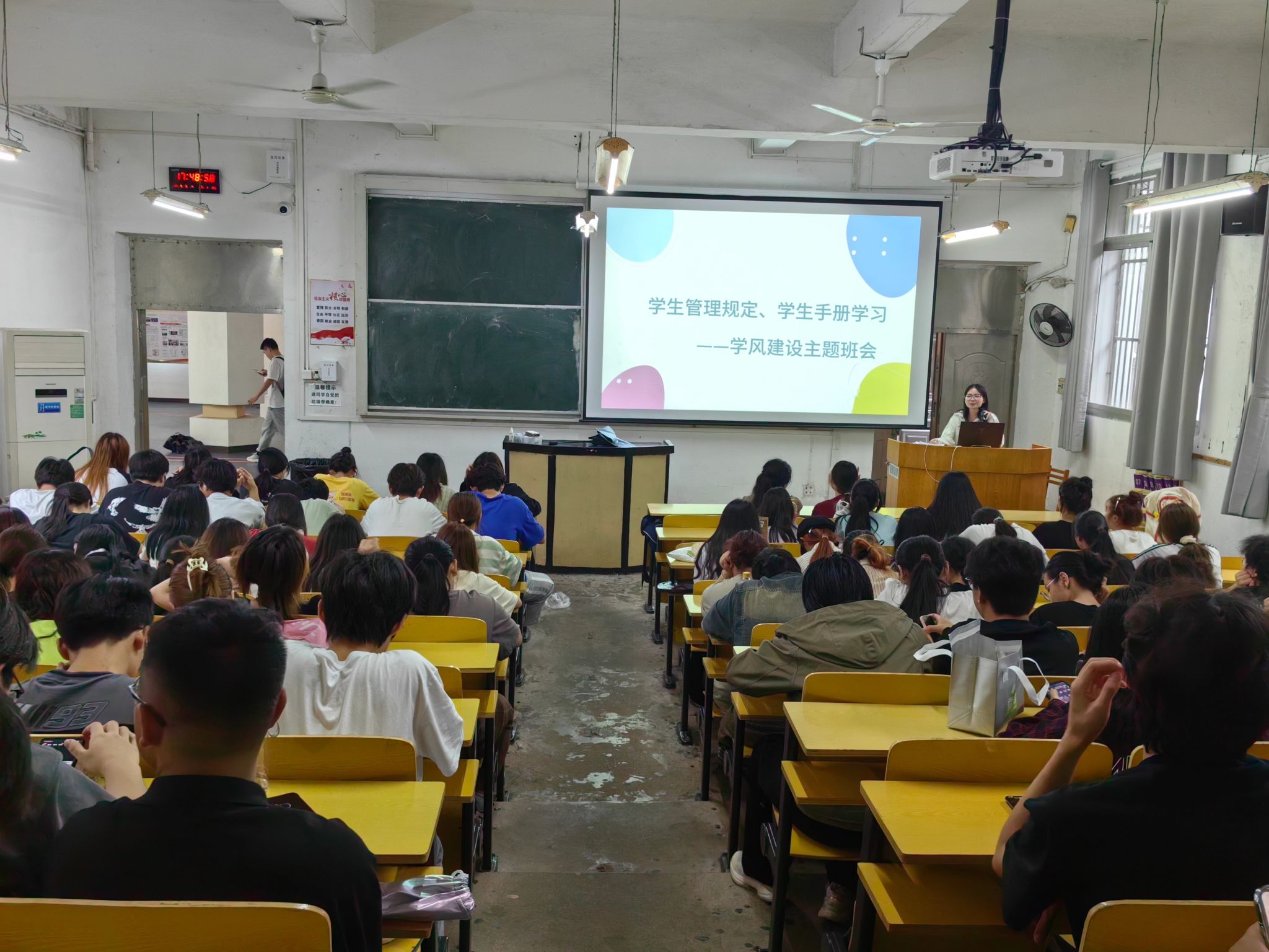 本网讯:4月25日下午,KY开元集团官网23级新生班级在红旗校区教学楼举办了一场以学风建设及形势与政策为主题的教育活动。此次活动由王奕婷老师主持,旨在提升学生的学术素养和对国家形势政策的深刻理解。
