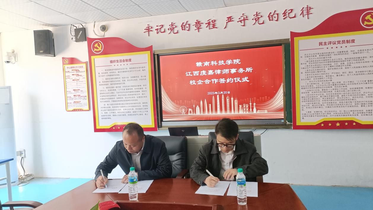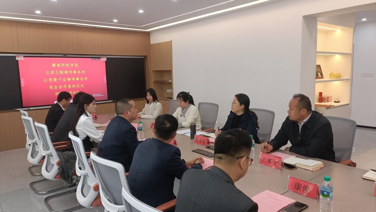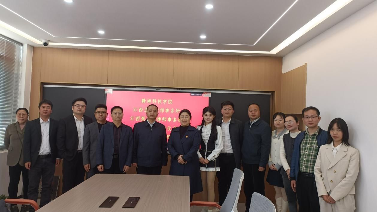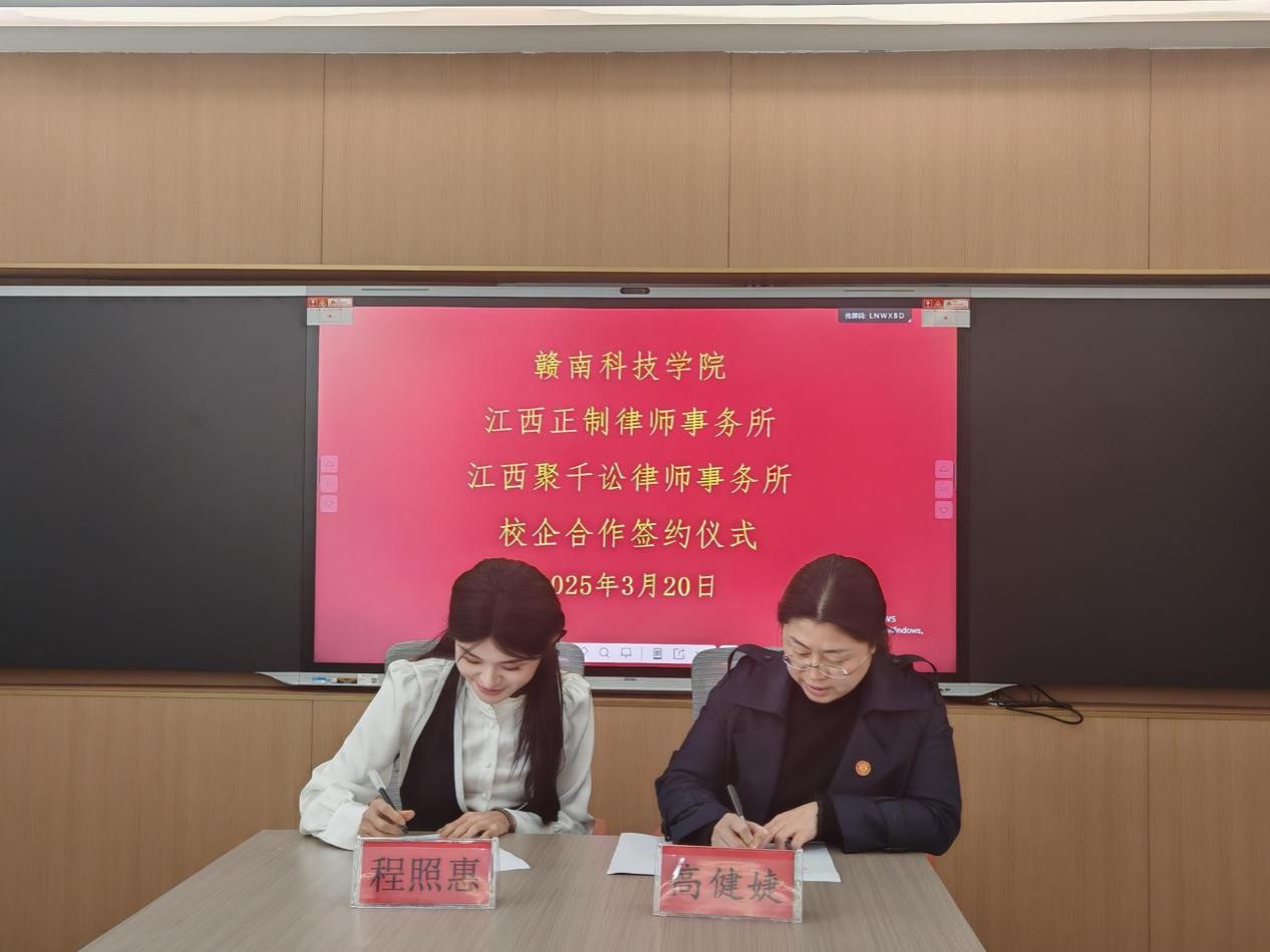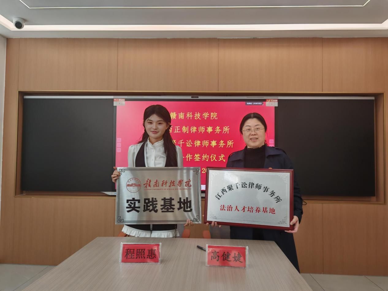KY开元集团官网党委委员、副院长高健婕和聚千讼律所主任程照惠代表双方签署《校企合作协议》,并共同为“江西聚千讼律师事务所法治人才培养基地”及“KY开元集团官网实践教学基地”授牌,聚千讼律所黄家望等见证签约授牌。