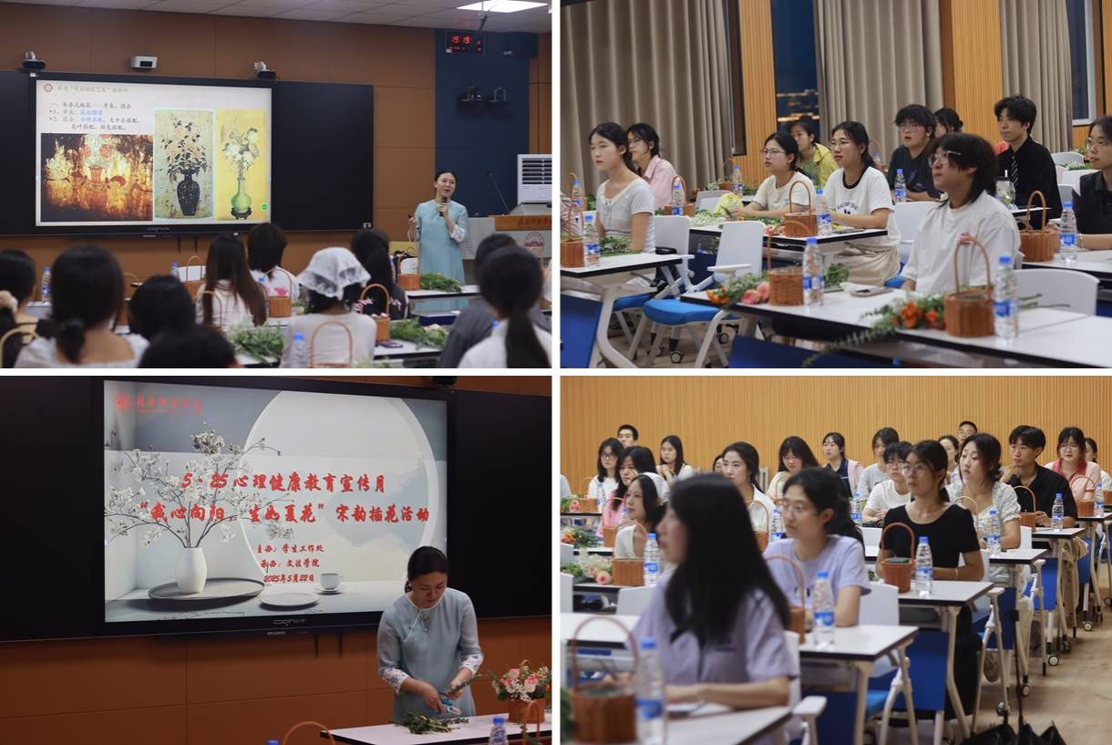 活动尾声,同学们主动清理场地,将剩余花材制成迷你花束赠予室友,让温暖持续传递。当剪刀遇见花枝,当传统碰撞青春,这场活动是心理健康教育与非遗美育的创新融合,不仅再现了宋人的风雅,更让非遗文化成为现代学子的心灵栖息地。一篮花开,满室春来——这或许就是传统文化“活态传承”最美的模样。
