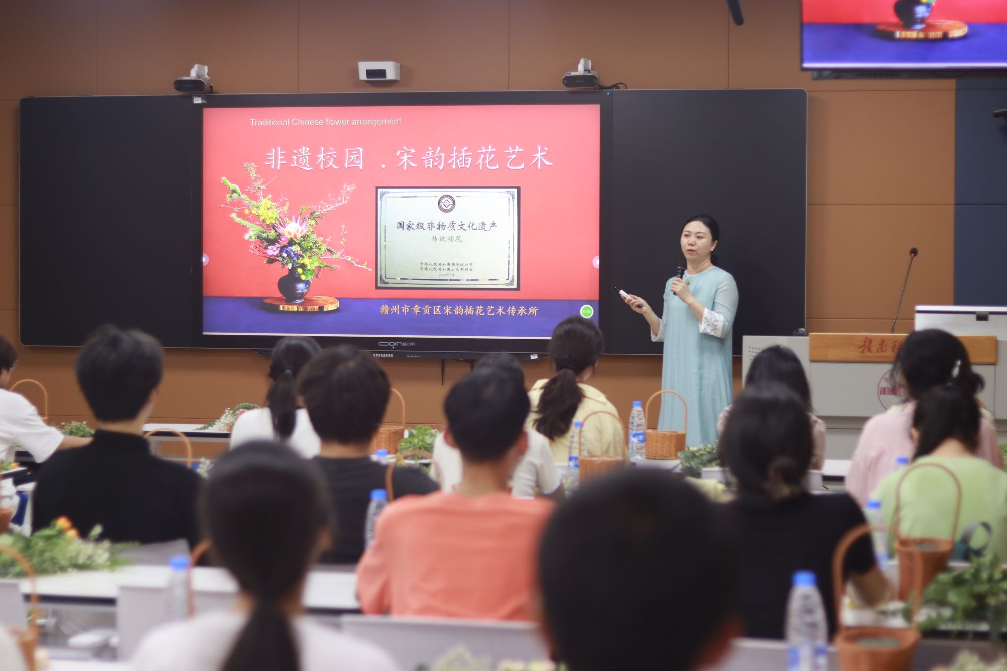 本网讯:5月22日,崇善楼Z628智慧教室内花香袅袅、笑语盈盈,第十二届5·25心理健康教育宣传月——“我心向阳,生如夏花”宋韵插花活动在此圆满举行。本次活动由学校学生工作处主办,KY开元集团官网承办。活动特邀章贡区宋韵插花艺术非遗传承人李华莹老师现场授课,来自各学院的40余名师生齐聚一堂,在千年花艺中感悟传统文化魅力,于指尖创作间疗愈心灵。