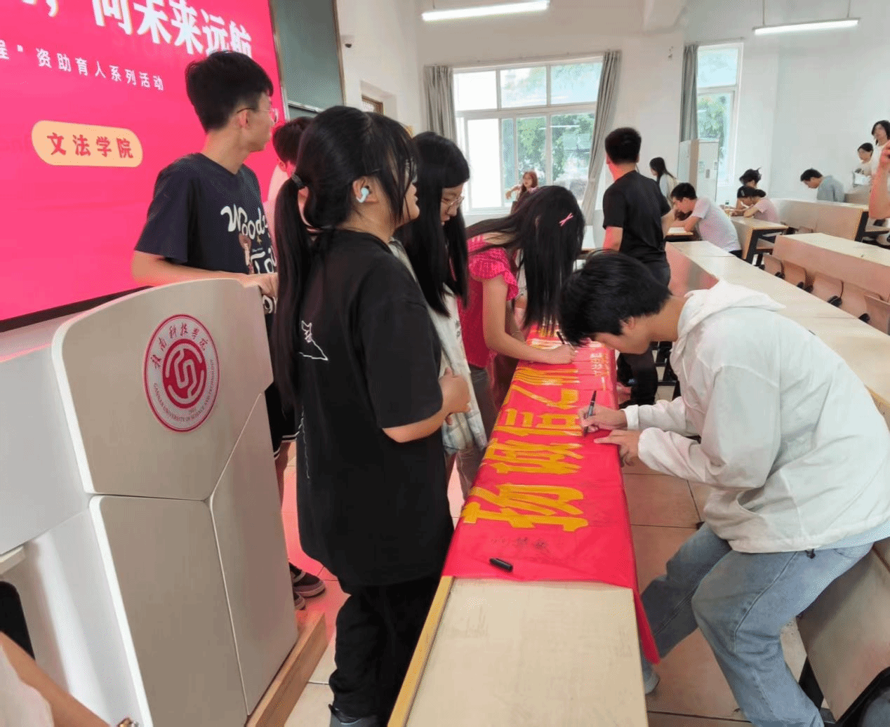 活动现场气氛热烈,同学们围绕诚信话题展开交流。一位受助学生表示:“今天的签名不仅是对自己的约束,更是对社会关爱的回应。我会牢记这份承诺,在今后的人生道路上始终坚守诚信。”