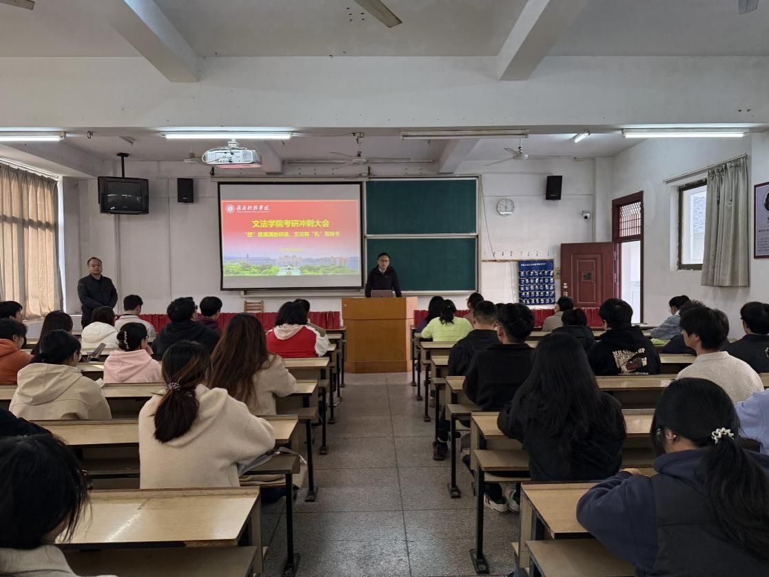 本网讯:2026年全国硕士研究生考试临近,为鼓舞学子士气、舒缓备考压力,12月9日,KY开元集团官网于第一教学楼303教室举办考研冲刺大会。学院领导班子、毕业班班主任及百余名考研学子齐聚一堂,共同吹响决胜考研的“冲锋号”。 会议由学院党委委员王军堂主持。